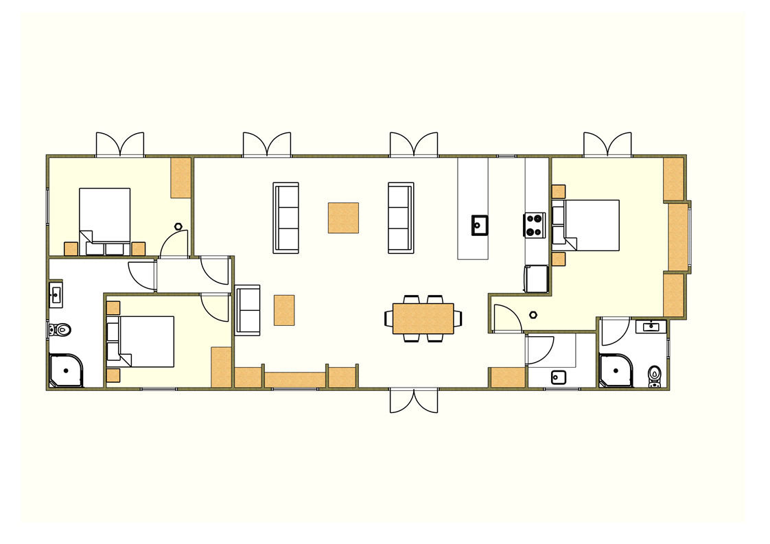 This beautiful 3-bedroom, 2-bathroom cottage is designed for relaxed, sunny living — with four sets of French doors opening onto the front veranda, perfect for enjoying those long summer days.