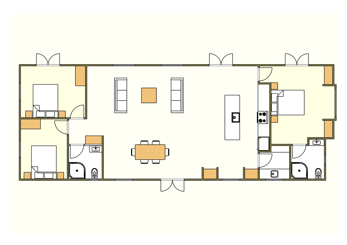 This beautiful 3-bedroom, 2-bathroom cottage is designed for relaxed, sunny living — with four sets of French doors opening onto the front veranda, perfect for enjoying those long summer days.